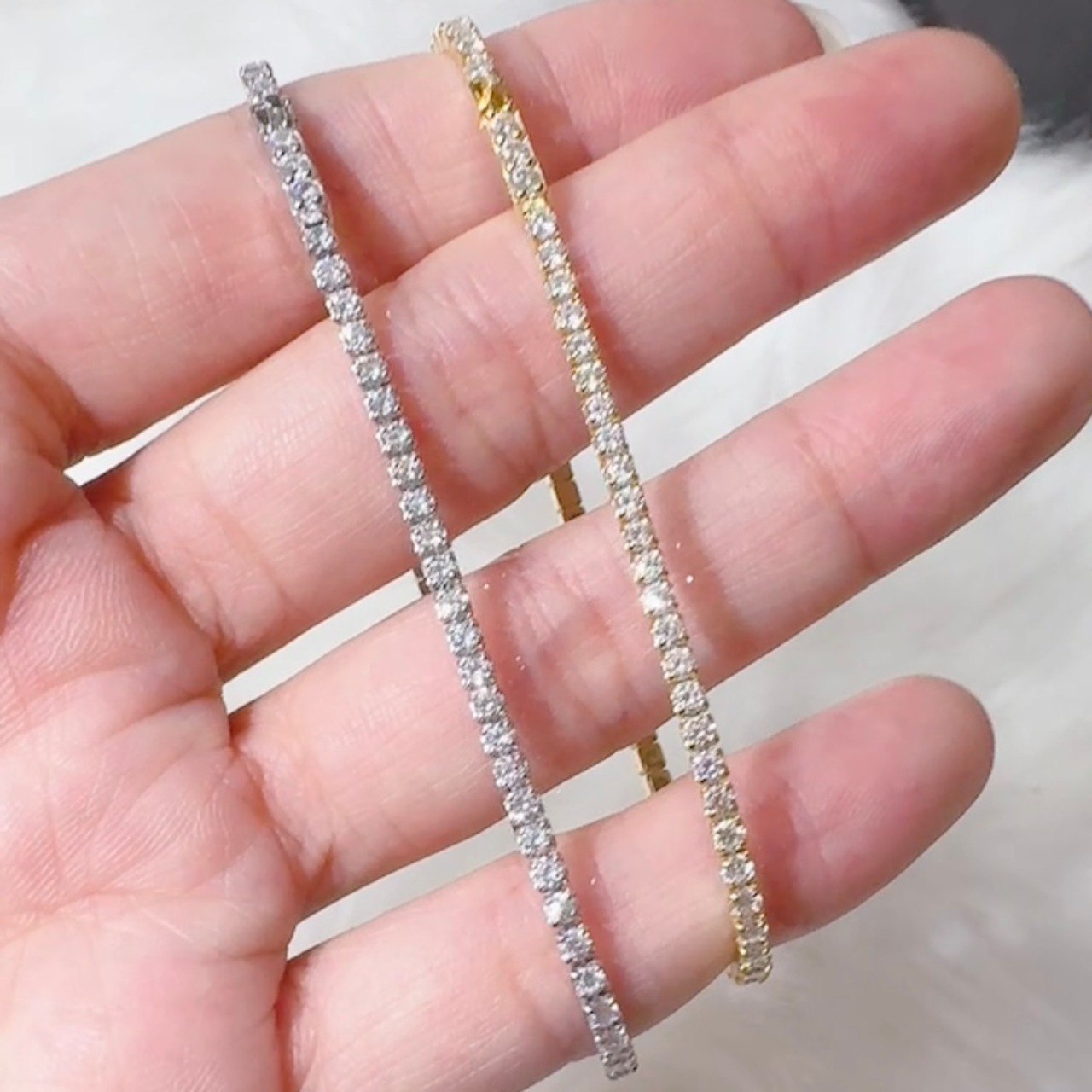 SV925テニスブレスレットは、洗練されたデザインと輝きを兼ね備えています。シンプルでありながら目を引く存在感を持ち、毎日のコーディネートを格上げします。特別な日だけでなく、日常使いにもぴったりです。